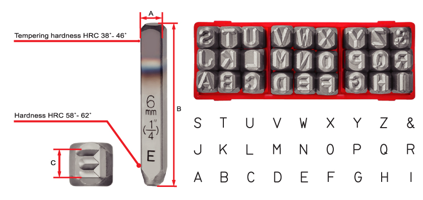 • Alphabet steel stamp set : 27 pieces includes A-Z, symbol &