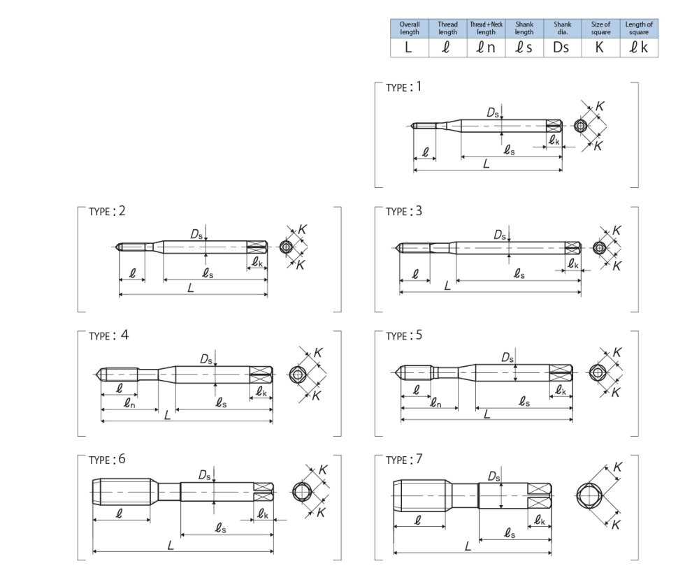 Number of oil grooves : Metric thread : M2.6 and smaller=non, M3 and larger=1