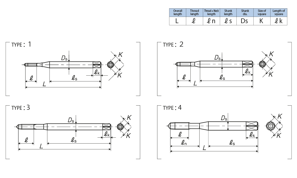 | 3 | M1.7×0.35 | G5 | SS400 | φ1.53 | 1.3 | 15 | Tapping machine | Water soluble |