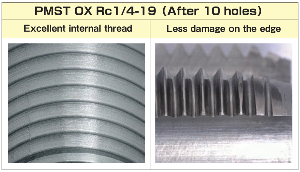Comparison table of tap dimensions between PMST OX Rc and "SP-PT (long thread type)"