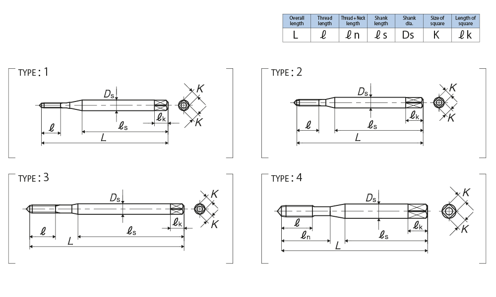 Number of oil grooves : Metric thread : M2.6 and smaller=non, M3 and larger=4