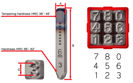• Reversed number steel stamp set : 9 pieces includes 0-8