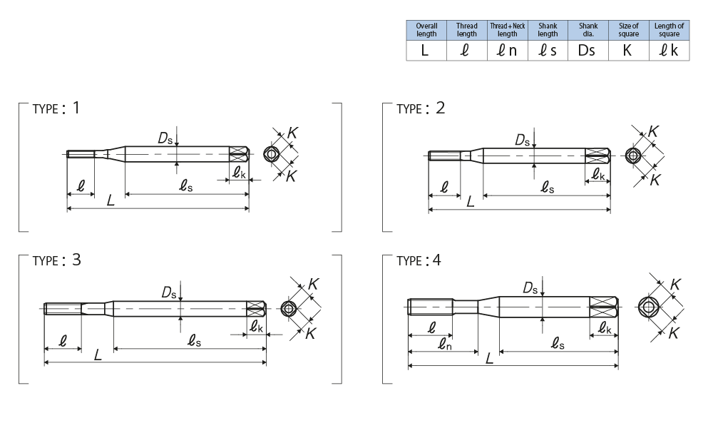 Number of oil grooves : Metric thread: M2.6 and smaller = non, M3 and larger = 2