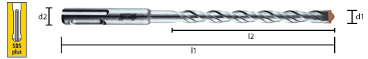 The SDS-plus hammer drill bit F4 with ist patented 4X stepped profi le and patented tip. Low wear, very long service life. High effciency drill bit for heavy-duty drilling in concrete,natural stone and brickwork.