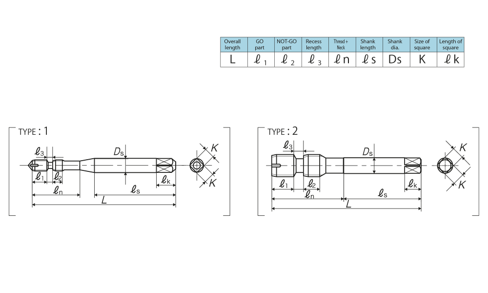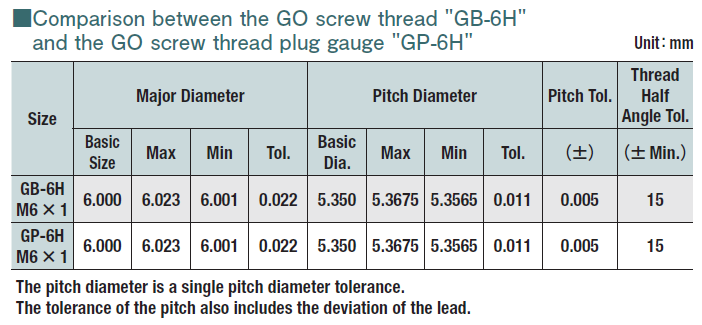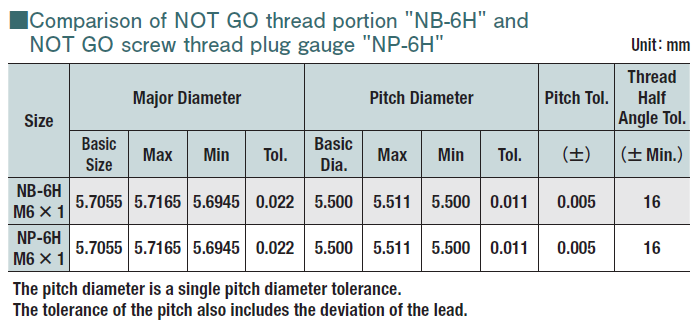* The screw thread precision is the same as a thread gauge, but since some of the specifications like length of screw thread portion and the relief shape of the thread root are originated by YAMAWA. Therefore, these gauges are not to be called "thread gauge" and distinguished as "simple inspection tools for internal screw threads".