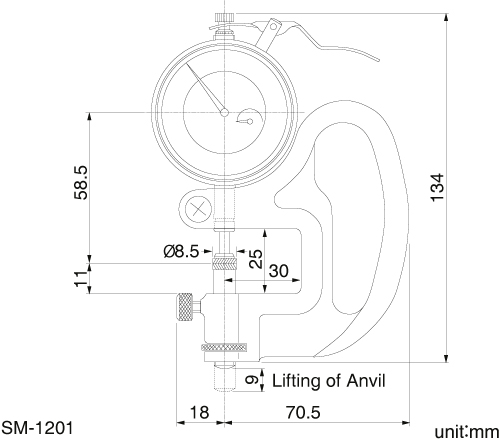 | SM-1201 | 0.001 | 10 | ±3 | 3 | 0-100-0 | 1.5 or less | φ8.5 Flat (Carbide) | φ8.5 Flat (Carbide) | 440 |