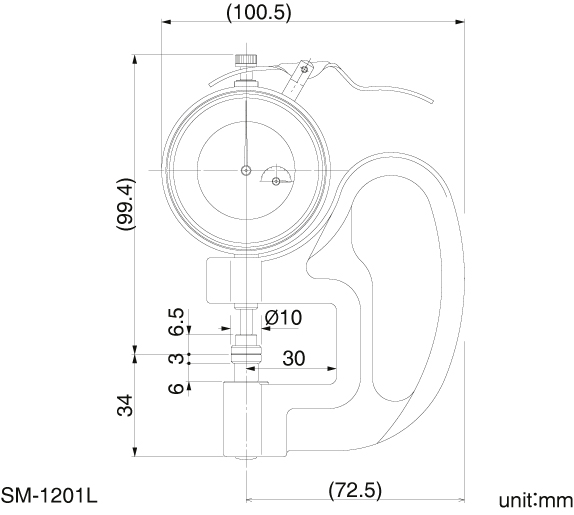 | SM-1201L | 0.001 | 1(3)* | ±3 | 3 | 0-100-200 | 1.5 or less | φ10 Flat (Ceramic) | φ10 Flat (Ceramic) | 420 |