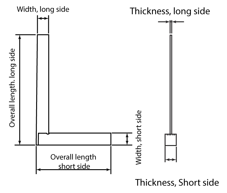 | Overall length, long side | Width long side | Thickness long side | Overall length, short side | Width short side | Thickness short side | |