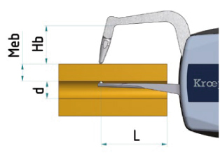Ball Ø 5.0 mm | Meb Measuring range Hb Measuring contact movable Hf Measuring contact fixed L Measuring depth d Diameter |