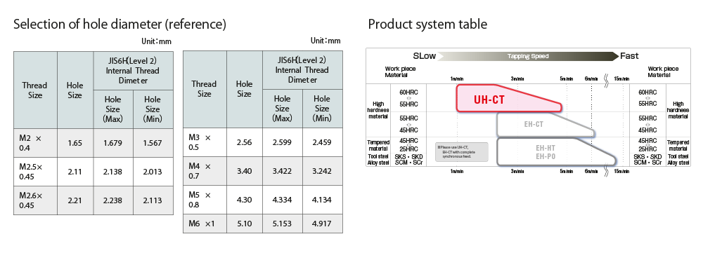 The figure above is a comparison of the number of tapped holes using a standard carbide tap (N-CT) and a