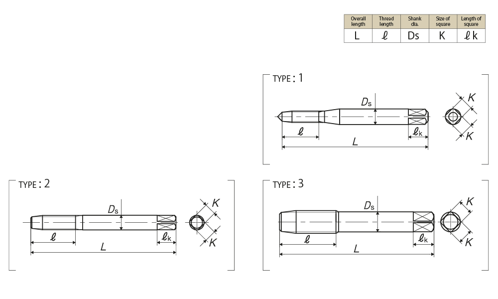 Note: Ds, K and ℓk of UH-CT are one rank higher than those of standard tap dimensions.