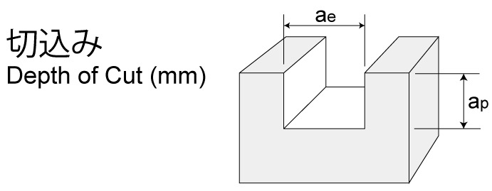 ③ 上記の切削条件は2枚刃の場合を示します。4枚刃は送り速度を1.5倍にしてください
