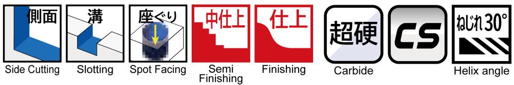 ②These Recommended Cutting Conditions indicate only the rule of a thumb for the cutting conditions. In actual machining, the condition should be adjusted according to the machining shape, purpose and the machine type.